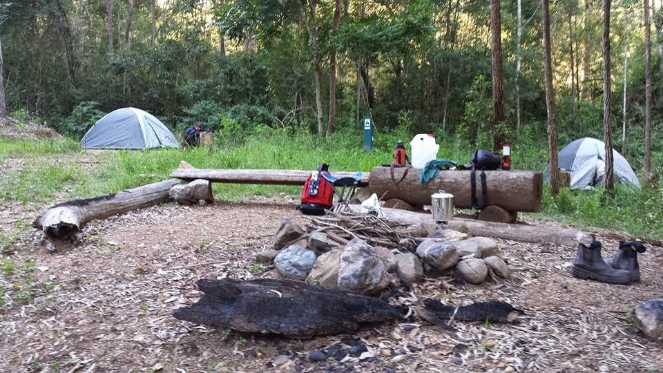 My friend and I recently camped here and upon arriving at the campsite, noticed it had been maintained since our last visit. Prior to this, the tent sites had been left in poor condition and were overgrown with weeds and there were some old rotting logs hastily arranged around a firepit. The condition of the campsite has dramatically improved since then and the old logs have been replaced with much larger logs sculpted into benches to sit on and there are two distinctive areas to pitch tents with minimal weed infestation. The creek crossing appears to have been severely damaged possibly by the 2010 flood, as part of the concrete slab has been washed a bit further downstream.